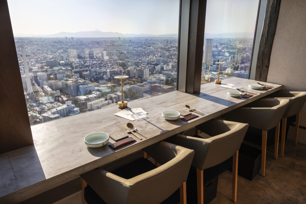 「心踊る世界の美食街」をテーマにした、恵比寿ガーデンプレイス38・39階のTOP of YEBISU。その39階にある「NORAN」は、大きな窓とともにスタイリッシュな空間が広がり、晴れた昼は富士山を望むことができる。