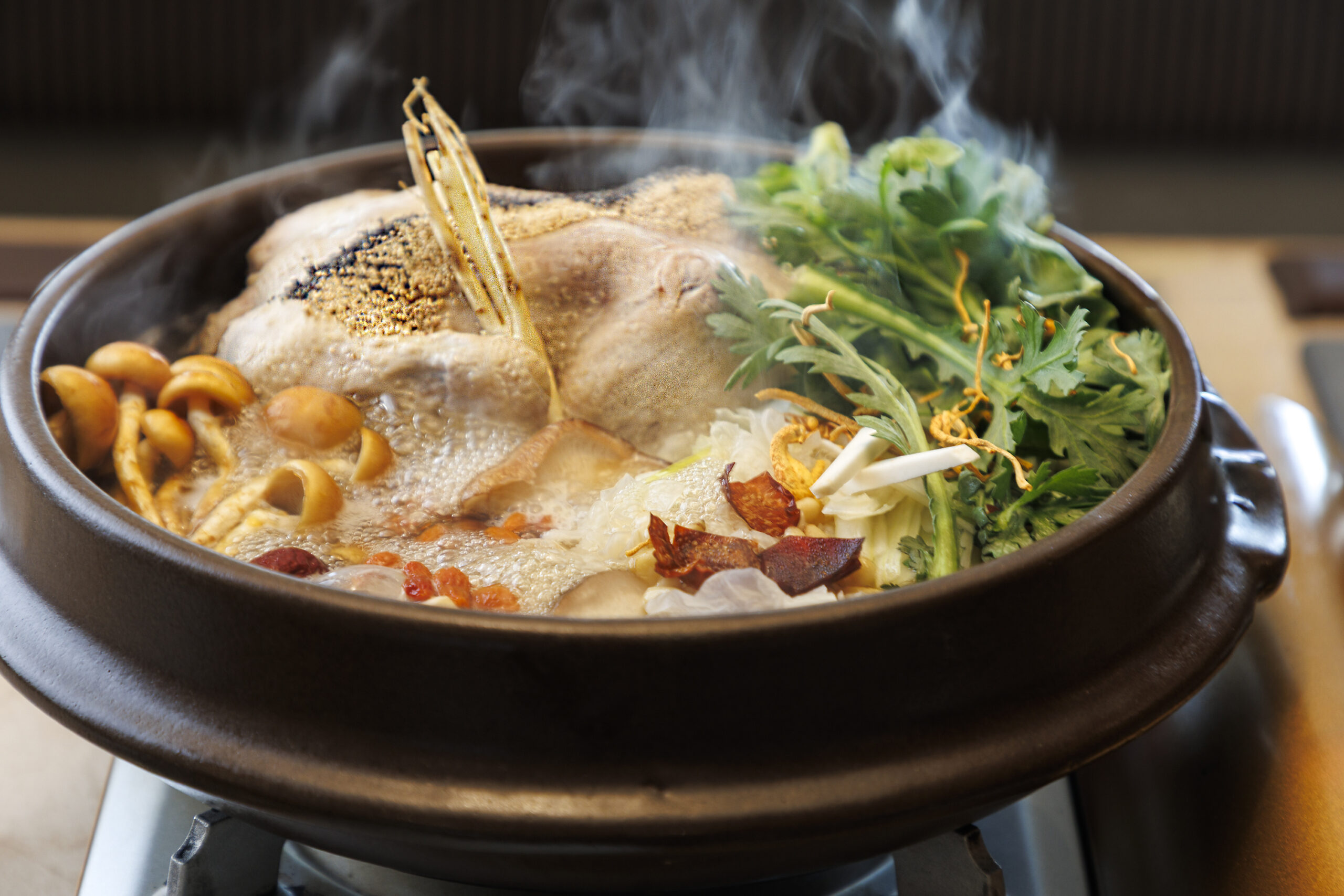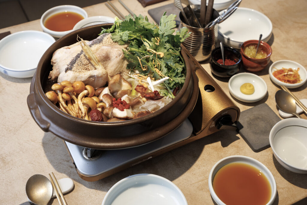 「NORAN」の名物メニューは韓国の伝統的な滋養食「薬膳タッカンマリ」。鶏一羽を贅沢に丸ごと煮込んだビジュアルは圧巻だ。