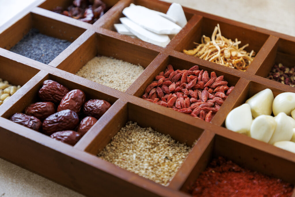 美肌やアンチエイジングに働きかけるナツメ、ホルモンバランスの調整につながる高麗人参など、生薬の種類と効果についてスタッフが教えてくれるので、薬膳に対しての知識が高まる。
