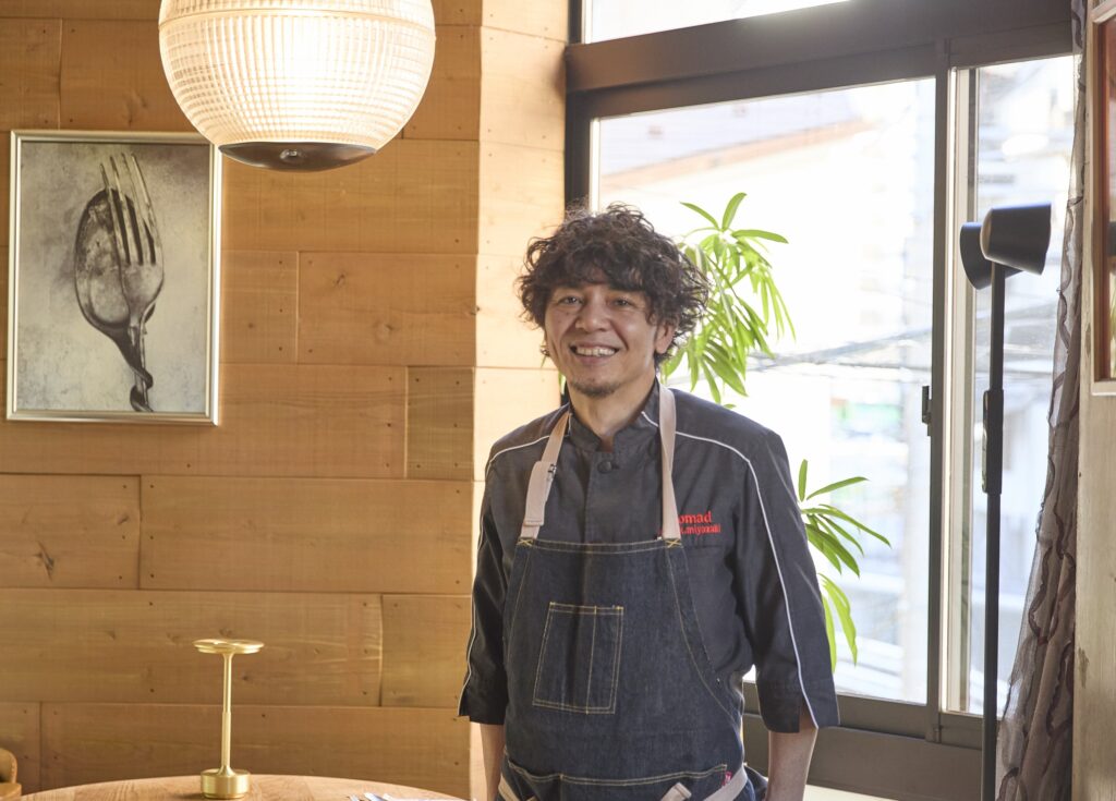 nomadは2017年、恵比寿にオープン。関西の名店「ポンテヴェッキオ」を経て、イタリアのミシュラン一つ星店など、数々の名だたる店で研鑽を積んだ宮崎勝仁さんがオーナーシェフを務める。